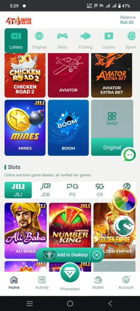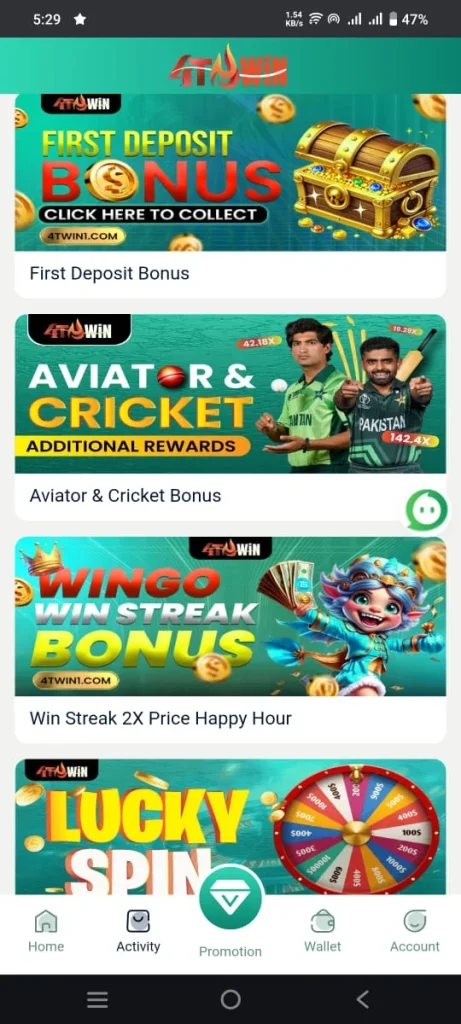 4TWin Game is a new modern gaming app in the world and it is highly profitable for users in Pakistan who play online. After becoming a part of it you can earn real income. Moreover in this game app you can earn more money by playing games with the bonuses you receive. In addition you can invest even a small amount and still achieve big wins from this game.