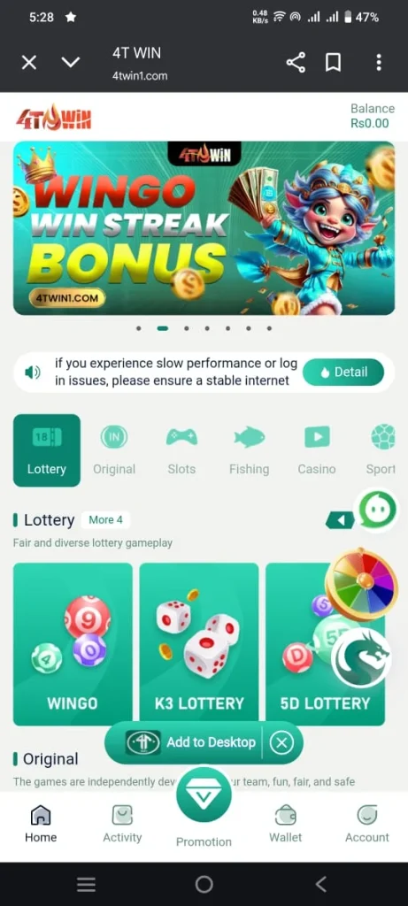 Nowadays everyone wants to earn online from their smartphone and increase their income through real earnings. Therefore 4TWin Game is very popular and beneficial for such people. With this game app you can successfully earn a lot while staying at home. Moreover pakistani users can join the game and receive various bonuses and rewards. By using these bonuses you can play games to earn more money and also withdraw them through local payment methods like jazzcash and easypaisa.