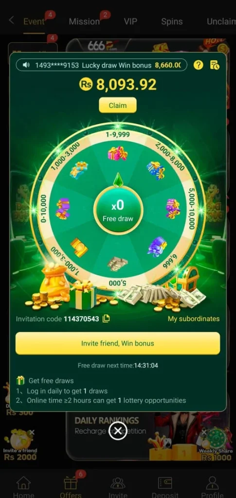 The 666P earning platform gives you the chance to earn daily. You can join any popular game according to your choice or claim free earnings from it. By playing these games Gamers get real rewards that help increase your income.