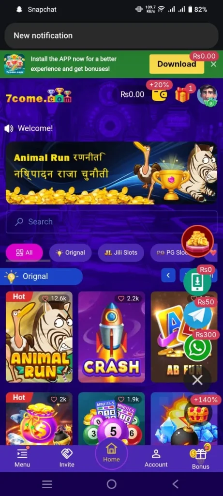 7Come Game casino is an online gaming platform that you can easily access through your smartphone. In todays digital world everyone wants to earn real income online. In this case the game provides a modern platform in pakistan where users can successfully increase their earnings. Moreover it is becoming a popular trend because it works like a club gaming platform specially designed for gamers and online users. with this app players do not just enjoy games but also earn a steady income.