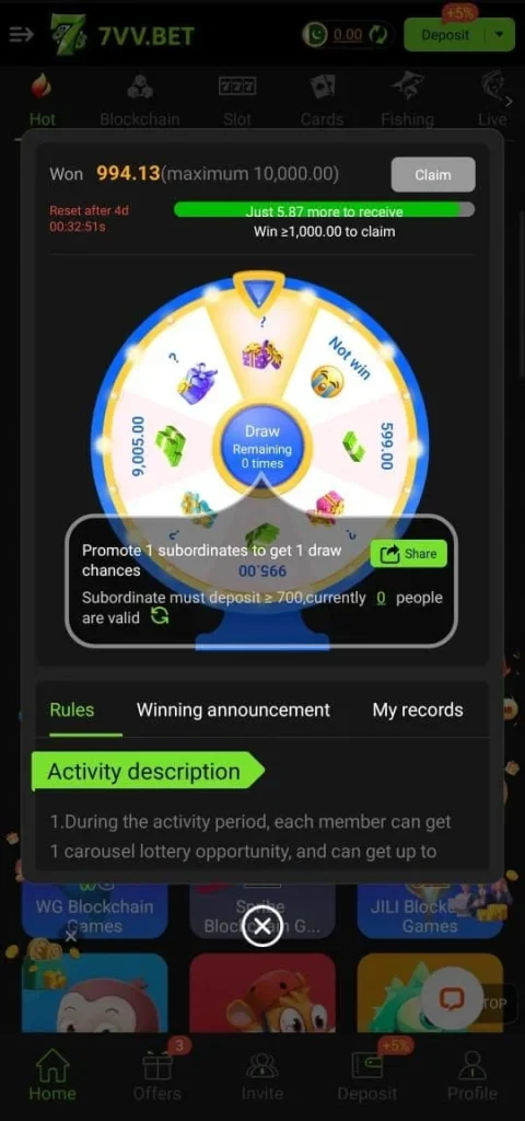 7VV Bet Game is not just an ordinary gaming app because it allows users to play games and earn real income at the same time. Every player can make money either by playing games directly or simply by joining the platform. Moreover users can also promote the app and earn additional commissions which means this game provides multiple ways of guaranteed income.
