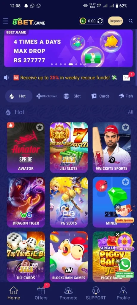 8Bet Game is now one of the most popular online casino platforms in Pakistan. It is a digital gaming app that gives players an easy way to enjoy entertainment and earn real cash. Moreover this gambling platform includes many famous casino game categories slot machines fortune games, Aviator and poker which are known for fast gameplay and strong money making potential. The game application also offers a simple interface and high quality graphics so online gaming users always experience smooth and exciting gameplay.