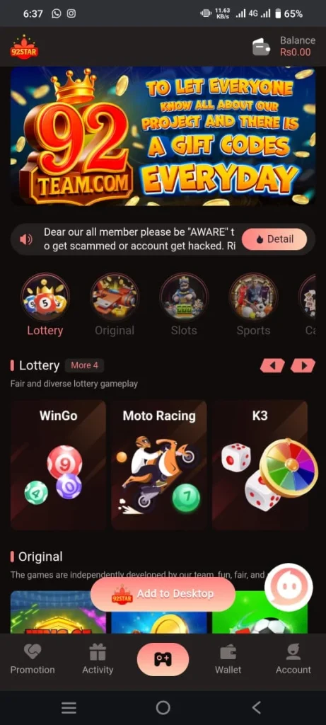 Lets dive into another gaming app 92 Star Game which can help you cover your daily expenses and pay your bills. the game with its impressive features like high quality graphics and excellent collection of games is becoming the centre of attention for youth in the gaming industry. It offers players amazing bonuses to boost your earnings and many people have won a lot of money by playing its variety of games. The standout features of game regular updates and localized design make it unique compared to other games and connect players from different regions of the country.