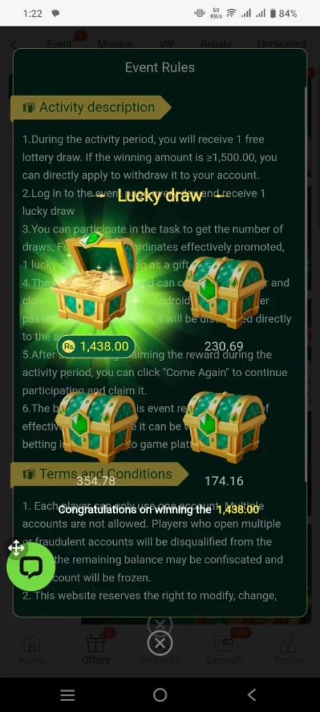 Along with this the platform also offers multiple bonuses such as daily login bonuses, weekly bonuses, account registration bonuses and referral bonuses which significantly boost a players daily income. By inviting more people users can earn even more while staying at home.Finally all winnings can be withdrawn through local payment methods like jazzcash and easypaisa making the withdrawal process simple fast and convenient.
