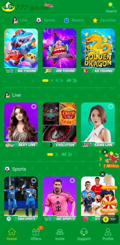 In addition this mobile casino app is not limited to games only it also includes free spins and a lucky wheel for extra winning opportunities. The LG 777 betting platform provides multiple facilities for users such as support for different languages betting adjustment options and 24/7 customer support therefore making it a reliable and modern real earning casino app.