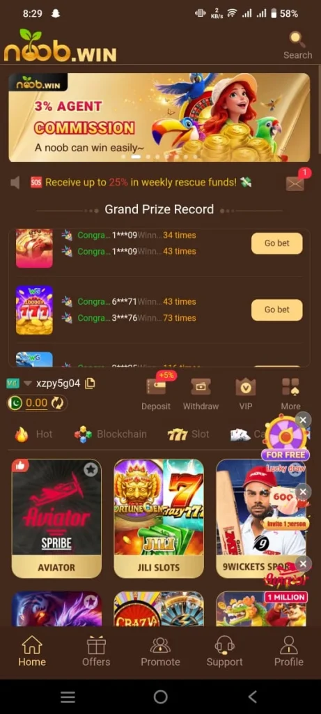 NoobWin Game is one of Pakistani top casino games and it is currently trending as a popular online real earning platform. Nowadays everyone wants to earn real cash online and people are always looking for easy and investment free platforms. For users who enjoy playing games and have a special interest in casino style gaming this earning platform offers many opportunities to win real cash. Importantly its includes multiple popular games such as aviator, slot machine, teen patti and poker.