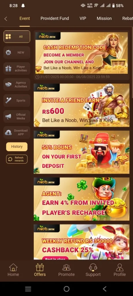 Thanks to its fast and smooth transaction system users can receive their winnings instantly without long waiting times. Furthermore every user on this gaming app receives various bonuses such as daily login bonuses weekly bonuses referral rewards The referral program is a major feature of this earning app. Gamers can invite others using their referral link and earn high commission in return. In short it is provides both entertainment and income in one platform making it a top choice for players across Pakistan who want to earn real cash while enjoying casino style games.