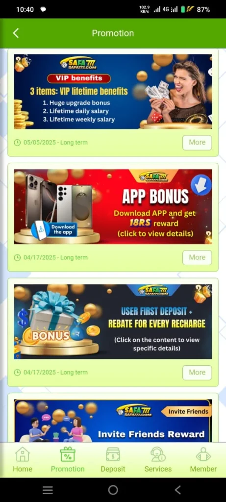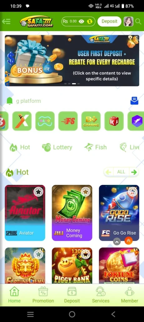 SAFA777 game is an online casino style gaming platform that has recently launched in Pakistan. Therefore people use it to earn special income and also enjoy playing games. To become a part of this game you do not need any special or separate device because you can easily play it on your own smartphone. Moreover the size of this game is small and it runs smoothly on every mobile.