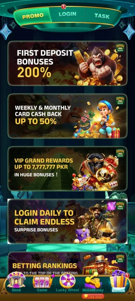 SpinwinPK Game has recently become a popular Pakistani online casino in the digital world and all gamers who want to earn real money from online games are joining this earning platform. Moreover it provides every player with multiple real earning opportunities along with many amazing features. These include multiple games, exciting bonuses multi language support a free spin lucky wheel and fast transactions for both deposits and withdrawals. Additionally it supports local payment methods such as Jazzcash and easypaisa for quick and secure transfers.