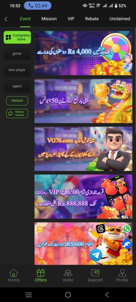 VG70 Game App is an online gaming platform that allows users to earn real income in a short time while enjoying exciting games. Players can experience real casino style fun and also win genuine rewards. Moreover this app is specially designed for casino lovers in Pakistan. Any Android user can download it for free and easily create an account.