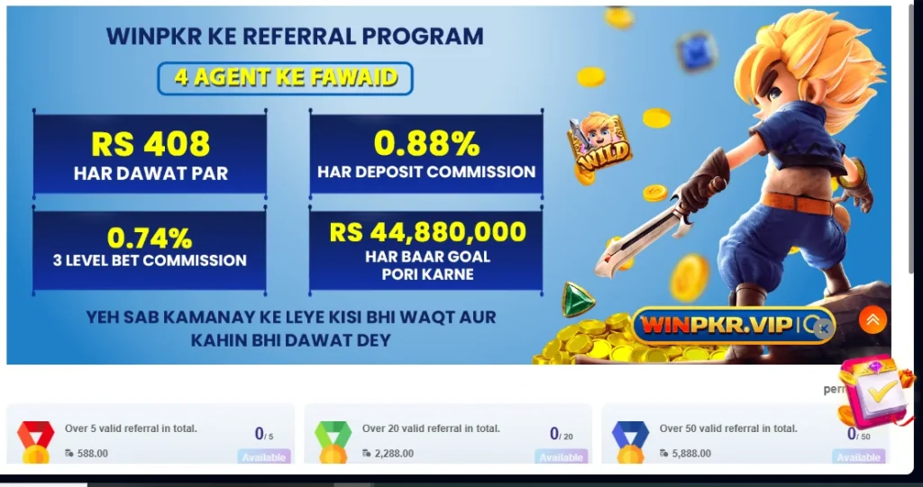 WINPKR Game is one of the best and most reliable earning platforms in Pakistan. It allows users to enjoy multiple opportunities to earn real income without any deposit. Moreover the app ensures complete protection of your earnings giving you full confidence while playing. In addition its instant withdrawal system processes your payments quickly and without any hidden charges. Therefore whether you are looking for fun or real rewards the earing game offers both in one secure and enjoyable platform. it stands out as a trusted and top rated gaming app for every Pakistani user.