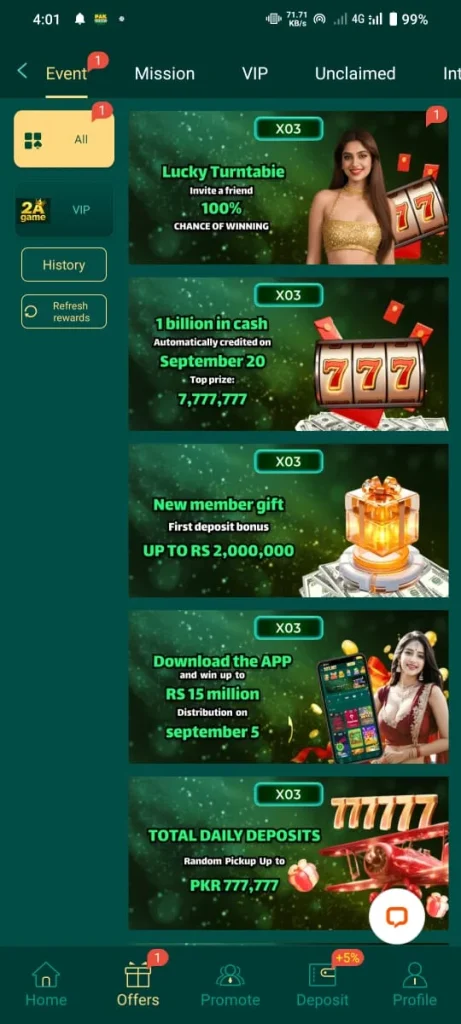 The game app is not just a gaming platform it also provides many opportunities to earn real cash. Users can choose their preferred way of earning, such as cricket betting, football betting live casino tables and many other events. Moreover by joining these options every player can take part and create their own earnings.