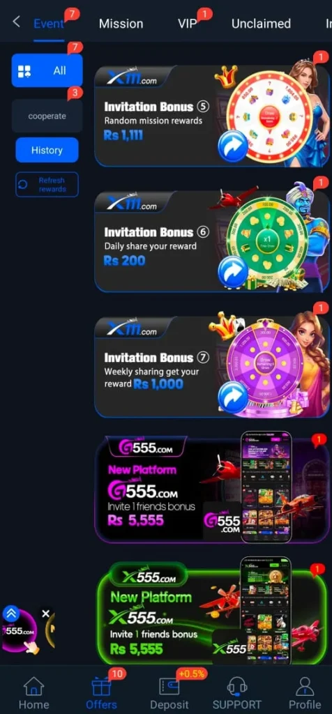 Invite your friends to join X 111 Game APK and earn extra money through the referral system.