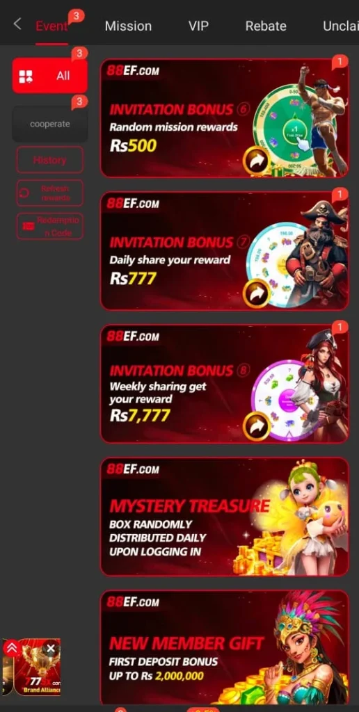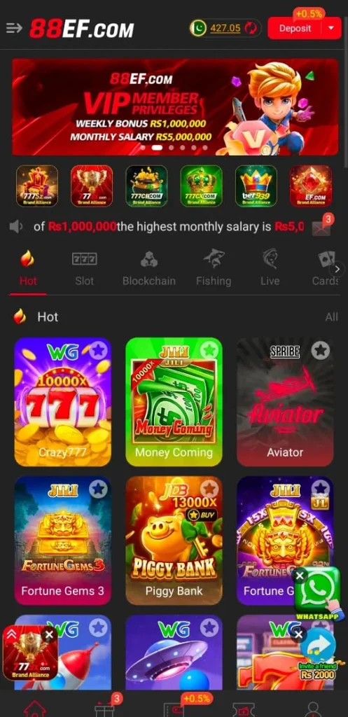 88EF Game Pakistan is a comfortable and reliable gaming platform in every way. Here you can play games to enjoy entertainment and earn rewards at the same time. Moreover the app offers multiple games, so you can enjoy different gameplay options in one place. In addition you can safely transfer your earned funds using local payment methods through secure transactions.