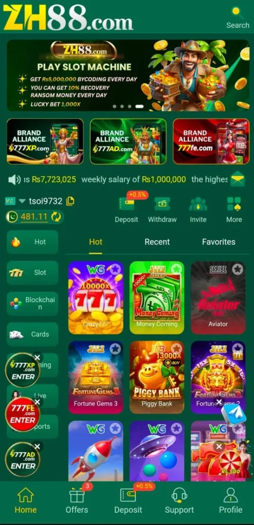 ZH88 Game is a new and exciting real earning gaming platform that allows users to play different games and earn free profits. It provides a simple and enjoyable way for players to make money while having fun. Moreover it is includes many popular games aviator, rortune games, teen patti and slots which keep users entertained and engaged every day.