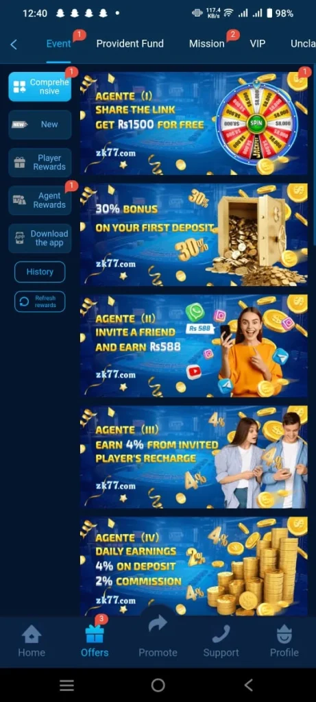 The ZK77 Game App is one of the best online gaming platforms in Pakistan. It provides casino lovers and gaming enthusiasts with a digital platform where they can enjoy games and also increase their daily income by playing. This app is not limited to a specific group of people instead anyone with an Android phone can join and start their real earning journey. Moreover the game offers multiple bonuses and various rewards to every user, which significantly boosts their income.