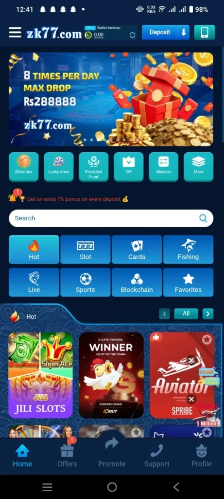 With Its users can start their earning journey directly from their smartphones without making any investment. Moreover the app has a simple and user friendly interface that offers multiple games in one platform. These include slot games, card games, Aviator, fishing, roulette and mini challenges giving players a wide variety of choices.